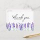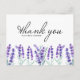 Envíe gracias con esta hermosa postal floral. Cuenta con ilustraciones acuarelas de flor de lavanda y escritura elegante. Personalice agregando nombres, dirección de retorno y mensaje. Estas tarjetas postales son para bodas, cumpleaños, graduaciones y mucho más.