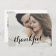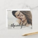 Muestre su apreciación con estilo con nuestro elegante boda de fotos de personalizable gracias postal, destacando la palabra "agradecido" en impresionante caligrafía moderna. Esta postal combina con gusto toques personales con un diseño sofisticado, lo que lo convierte en la forma perfecta de expresar su gratitud a sus huéspedes. Personalice la postal de agradecimiento con su mensaje único de agradecimiento. Puede agregar fácilmente sus nombres, fecha de boda y cualquier sentimiento adicional, asegurándose de que resuene con su personalidad y apreciación. Haz una declaración significativa con esta preciosa postal de agradecimiento, combinando un diseño hermoso con un toque personal para crear una impresión duradera que muestra a tus seres queridos cuánto significaba su presencia en tu día especial.
