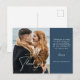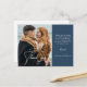 Postal Boda de fotografía de caligrafía azul moderna mari