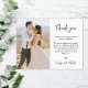 Presupuesto, Moderno y Elegante Script Corazón Foto Asequible Boda Barato Gracias Postcard en Blanco y Negro. Plantilla de tarjeta boda elegante y minimalista con 1 foto en la parte delantera y 1 foto en el reverso. "Gracias", texto con letras a mano y caligrafía con corazón de amor rosado. Es fácil agregar tu nombre y mensaje de agradecimiento. Si necesita ayuda o un elemento que coincida, póngase en contacto con el diseñador.