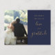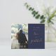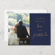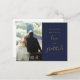 Postal Boda de fotos de Navy Blue Y Gold Script Gracias