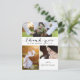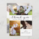 Simple tipografía boda foto de agradecimiento tarjeta. 3 fotos en la parte delantera y una en la parte trasera. Envíe su tarjeta de agradecimiento a su boda como recién casados a sus amigos y familia usando esta hermosa y simple postal de fotos en blanco y negro con las palabras "gracias" escritas en un guión de caligrafía negra. Boda Gracias Postales con Tus Fotos. Diseño de Elke Clarke© . Reemplace las fotos de ejemplo con las suyas. Añade tu mensaje de agradecimiento personal en la parte de atrás o deja en blanco y escribe tu mensaje en persona a mano. Hay otros colores disponibles.