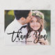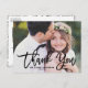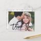 Tarjeta de agradecimiento moderna y elegante con tipografía de pincel negro. Este diseño está disponible como tarjeta plana. Es perfecto como boda gracias postal, pero también es genial para graduaciones y otros eventos.
