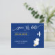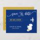 Usted eligió un lugar especial para su boda. Ahora es el momento de celebrarlo con esta etiqueta para guardar la postal de fecha, con un mapa de siluetas y un pequeño avión dirigiéndose a tu destino. Para mover el corazón al lugar de su boda, haga clic en personalizar y luego en "personalizar".