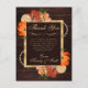Gorge Rustic Watercolor quemado naranja otoño flores otoño diseño floral sobre un fondo de madera marrón con borde de Relieve metalizado dorado