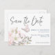 Pastel Magnolias Mariposa Boda Save The Date. Permita que sus invitados sepan que están atando el nudo con anticipación para que puedan mantener el día libre enviándoles una práctica postal. Este diseño elegante tiene Save The Date en una tipografía de letra cursiva elegante y el resto del texto serif se personaliza fácilmente a sus propios detalles. Las flores de magnolia suaves de acuarela pastel están en la esquina inferior izquierda y un motivo de mariposa rosa. Para ahorrar tiempo escribiendo a mano los nombres y direcciones de sus invitados, también puede considerar nuestras etiquetas individuales con el nombre y la dirección del invitado para sus envíos de boda disponibles en esta colección.