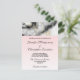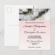 Tarjeta postal de invitación de boda con un patrón de mármol elegante y moderno. Mármol gris blanco y ahumado con cintas finas de remolinos de oro falso en todo el patrón. Un fondo de degradado rosa claro debajo del patrón de mármol.