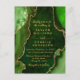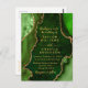 Esta elegante y glamorosa invitación a la boda incluye un fondo de mármol de ágate verde con falsos toques de purpurina dorado. El texto combina el guión manuscrito y las fuentes sans serif modernas para un aspecto elegante y sofisticado. Esto será perfecto para otoño y bodas de invierno.