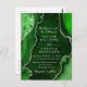 Esta elegante y glamorosa invitación a la boda incluye un fondo de mármol ágata verde con falsos acentos purpurinas de plata. El texto combina el guión manuscrito y las fuentes sans serif modernas para un aspecto elegante y sofisticado. Esto será perfecto para otoño y bodas de invierno.