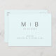 Sencillo y brillante azul helado con Monograma Gris Guardar la fecha. Boda. Nombres primero y último. Moderno. Tropical. Postal.