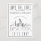 Una tarjeta postal única que salva la fecha para un matrimonio que tiene lugar en la hermosa ciudad/estado de Nueva York. Esta invitación presenta un ilustracion estilizado del paisaje único de la ciudad con su nombre debajo. A esto le sigue la información del día de la boda en un estilo de línea abierta que coincide. En el reverso de la publicación está la información de dirección. Todos los elementos individuales de la tarjeta de invitación están desbloqueados, por lo que puede cambiar cualquier detalle necesario, como tamaños de letra, estilos y más, utilizando la función de personalización. Puede agregar una foto al reverso y agregarle un filtro en blanco y negro. ¡Diviértete siendo creativo y hazlo tuyo!