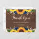 Este rústico diseño rústico presenta luces de cuerda doradas blancas y encaje junto con girasoles amarillos, rosas azul marino y aliento de bebé blanco contra un fondo de madera oscura marrón. El texto del personalizable aparece en blanco dorado en el frente en escritura popular y tipografía sérica. El texto de la parte posterior es negro elegante. Puede personalizar esto para guardar la postal de fecha de su propio boda cambiando el texto de la plantilla.