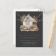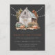 Rustic Fall Country Barn String Lights Wedding Invitation - Nuestra invitación rústica incluye un pintoresco granero de color acuático rodeado de calabazas, follaje otoñal y girasoles a las puertas del granero. Las luces de cuerda tambaleantes cuelgan sobre la cabeza. La invitación forma parte de una colección.