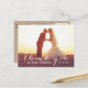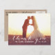 Simple Boda de fotos con guión escrito a mano. Gracias Postales. Diseño de Elke Clarke© para MonogramGallery impreso por Zazzle. Envíe su mensaje de agradecimiento a su boda como recién casados a sus amigos y familia usando esta hermosa y simple postal de foto boda de agradecimiento con las palabras "gracias" escritas en un texto de escritura tipográfica de escritura blanca sobrepuesta. Reemplace la foto de ejemplo con la suya propia. Añade tu mensaje de agradecimiento personal en la parte de atrás o deja en blanco y escribe tu mensaje en persona a mano. Efecto fotográfico impreso en fondo de papel kraft beige sobre la parte posterior de la tarjeta. Hay otros colores disponibles.