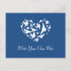 Postal Boda de tema azul corazón de pájaro Gracias Postca