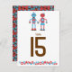 Un bonito par de robots rojos y azules y engranajes de diferentes tamaños adornan esta desenfadada suite de invitados a la boda. Este diseño es perfecto para parejas que quieren algo único y memorable para anunciar su celebración.