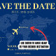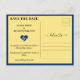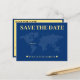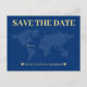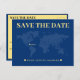 Mapa de boda azul y amarilla del mundo ahorra la tarjeta de fecha para una boda de destino. Personalízalo con la información de tu evento.