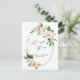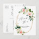 Elegante Boda Gracias Postcard con flores de acuarela pintadas en un follaje rosa, blanco y verde con un marco dorado ovalado. Para una personalización más avanzada de este diseño, pulse el botón "Personalizar". También están disponibles los elementos coincidentes.