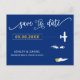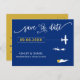 Usted eligió un lugar especial para su boda. Ahora es el momento de celebrarlo con esta etiqueta para guardar la postal de fecha, con un mapa de siluetas y un pequeño avión dirigiéndose a tu destino. Para mover el corazón al lugar de su boda, haga clic en personalizar y luego en "personalizar".