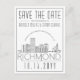 Una tarjeta postal única de "save-the-date" para una boda que tendrá lugar en la hermosa ciudad de Richmond, Virginia. Esta invitación presenta una ilustración estilizada del horizonte único de la ciudad de Richmond con su nombre debajo. A esto le sigue la información de su día de boda en un estilo abierto y lineal coincidente. En el reverso de la postal está la información de su dirección. Todos los elementos individuales de la tarjeta de invitación están desbloqueados, así que siéntase libre de cambiar cualquier detalle necesario, como tamaños de fuente, estilos y más, utilizando la función de personalización. Puede agregar una foto al reverso y aplicarle un filtro en blanco y negro. ¡Disfrute siendo creativo y haciendo que sea suyo!