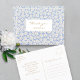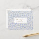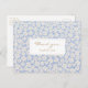 Moda y elegante con colores cálidos dorados. Este boda le agradece que postal incluya un par de nombres en la parte delantera y un mensaje de agradecimiento en la parte posterior con un bonito fondo floral azul y blanco. Esta postal forma parte de una suite boda que incluye otros elementos como invitaciones, tarjetas RSVP y más.
