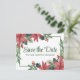 Disfrute del ambiente acogedor de su boda de invierno con esta elegante floral de Navidades rojos para guardar los anuncios de fechas. Las invitaciones cuentan con flores de poinsettia de color rojo y están enclavadas en un frondoso entorno invernal. Los detalles de su boda se imprimen en el dorso en el alfabeto verde y rojo y en fuentes fáciles de leer. Puedes personalizar esta tarjeta para muchos eventos - Navidades de invierno duchas de novias y bodas * negocios, * uso personal * fiestas de vacaciones * recaudadores de fondos y organizaciones de beneficencia. Desplácese hacia abajo para ver los productos y regalos que se correspondan.