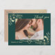 Elegante boda floral verde esmeralda y dorado gracias a la postal con un romántico acento cardíaco de cuerda. Este diseño incluye espacio para la foto de su personalizado, mensajes de agradecimiento personalizados y una dirección de retorno impresa para mayor comodidad. No se necesitan sobres, simplemente personaliza y envía correo directamente. Una manera atemporal de agradecer a los invitados y compartir recuerdos bodas.