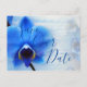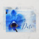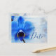 Tarjeta postal de boda floral de orquídea tropical azul con acuarela moderna