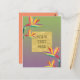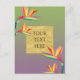 Postal Boda floral dorada púrpura verde ave del paraíso