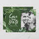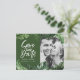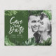 El follaje tropical y la inscripción a mano en la boda monocromada fotográfica ahorran la postal de fecha. Parte de una suite boda.