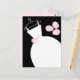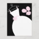Tarjeta postal de temática nupcial con un diseño de bonito en tonos rosa, negro y blanco, con un estilizado vestido boda en una percha acompañado de un ramo en la parte delantera y una espalda rosa pálido. Un diseño de personalizable para que puedas personalizar con tu propio texto, imágenes e ideas.