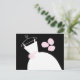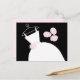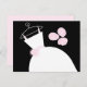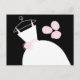 Tarjeta postal de temática nupcial con un diseño de bonito en tonos rosa, negro y blanco, con un estilizado vestido boda en una percha acompañado de un ramo en la parte delantera y una espalda rosa pálido. Un diseño de personalizable para que puedas personalizar con tu propio texto, imágenes e ideas.