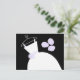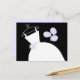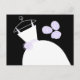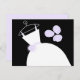 Tarjeta postal de temática novia con un diseño de bonito en tonos violeta, negro y blanco, con un estilizado vestido boda en una percha acompañado de un ramo en la parte delantera y la parte posterior púrpura pálido. Un diseño de personalizable para que puedas personalizar con tu propio texto, imágenes e ideas.