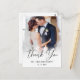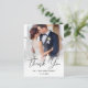 Gracias a sus bodas invitados con estilo con esta sencilla y minimalista boda gracias postal. Este elegante diseño presenta su foto boda y debajo de una tipografía moderna con letras a mano que dice "Gracias" con su nombre y fecha boda a continuación para personalizar. La parte posterior de la tarjeta postal tiene un mensaje y una firma que personalizar. Me encantó crearlo para ti. ¡Mis mejores deseos para un matrimonio largo y feliz! Diseñado por ©Susan Coffey.