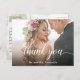 Envíe sus notas de agradecimiento a su boda con esta tarjeta postal personalizada que incluye su foto de boda favorita en la parte delantera y otra foto opcional en la parte posterior. Se ha agregado un texto de ejemplo que puede editar con sus propias palabras o borrar el texto y escribir a mano sus notas. Reemplace las fotos de ejemplo con sus propias selecciones.