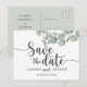 Postal Boda moderna de eucalipto verde, guárdala la fecha