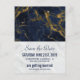 La boda permite guardar la postal de fecha con un elegante y elegante fondo de mármol azul marino y dorado. La mitad inferior de la tarjeta también tiene un patrón de mármol blanco roto, con el texto personalizado escrito encima.