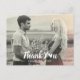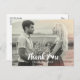 Postal boda moderna con un gran "Gracias" con un corazón elegante y un texto personalizado. Añade la mejor foto y los mejores detalles del personalizado al frente y la parte posterior de la tarjeta.