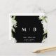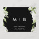Postal Boda Monograma de Floral Blanca B/W Guardar la fec