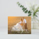 Envíe notas de agradecimiento personalizadas al boda con una foto de boda favorita insertada en la parte delantera de la tarjeta. A tus amigos y a tu familia les encantará tener una foto de recuerdo del día de tu boda. Este diseño de moda tiene un guión de pincel blanco "gracias" que sobrepone la foto deseada con espacio para sus nombres. El reverso de la tarjeta tiene un ejemplo de texto que puede editar con sus propias palabras, o borrar el texto y escribir a mano sus notas de agradecimiento.