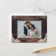 La foto de tu boda está bordeada de luces suaves y acentuada con luces de cuerda y un fondo rústico, rústico, marrón, de madera templada y encaje de marfil y se titula LOVE & THANKS junto con tus nombres en una letra impresa a mano occidental de un país. La parte posterior incluye otra foto y ofrece un lugar para escribir un mensaje general de agradecimiento o puede borrar el texto de muestra para dejar el área en blanco para notas personales de agradecimiento escritas a mano. PUNTO DE FOTOGRAFÍA: Para obtener resultados más rápidos/mejores, elija una foto con el sujeto en el medio y/o pre-recorte en una forma similar a la que se muestra ANTES de subir. Póngase en contacto con el diseñador a través de Zazzle Chat o makeitaboutyoustore@gmail.com si desea modificar este diseño, en otro producto o si desea coordinar elementos.