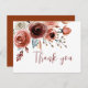 Celebra la belleza de la temporada de otoño con este impresionante y único Boda rústico botánico borgoñonés Gracias Postcard. Cada postal está cuidadosamente elaborada con atención a los detalles y cuenta con un impresionante diseño de acuarela botánica que captura perfectamente el encanto rústico de su boda. Los ricos colores del naranja quemado y el burdeos le dan un toque cálido y acogedor a su mensaje, mientras que las delicadas flores le dan un toque de elegancia e inspiración boho. Estas postales modernas y sofisticadas son la manera perfecta de agradecer a sus invitados por compartir en su día especial y recordarles los maravillosos recuerdos que crearon juntos.