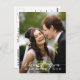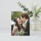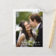 Boda de fotografías de escritura simple en blanco. Gracias Diseño vertical de postales. Diseño de Elke Clarke© para MonogramGallery impreso por Zazzle. Envíe su mensaje de agradecimiento a su boda como recién casados a sus amigos y familia usando esta hermosa y simple postal de foto boda de agradecimiento con las palabras "gracias" escritas en un texto de escritura tipográfica de escritura blanca sobrepuesta. Reemplace la foto de ejemplo con la suya propia. Añade tu mensaje de agradecimiento personal en la parte de atrás o deja en blanco y escribe tu mensaje en persona a mano. Hay otros colores disponibles.
