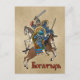 Una representación de una batalla entre un bogatyr ruso y un guerrero asiático, ambos a caballo. El texto cirílico (ruso) que dice "Богатырь" (Bogatyr) también aparece. Los bogatyr son personajes heroicos que se encuentran en las épicas eslavas medievales. Son similares a los caballeros andantes de la literatura occidental. La mayoría de las historias sobre bogatyri giran en torno a la corte de Vladimiro I de Kiev (958–1015). Se presume que algunos bogatyr son figuras históricas. Los bogatyr protegían la tierra y el pueblo ruso contra los invasores, especialmente los tártaros. A algunos se les atribuían poderes y fuerza casi divinos. Esta imagen está adaptada de una ilustración de dibujo lineal en blanco y negro en "Повесть о славных богатырях, златом граде Киеве и великой напасти на землю Русскую" (Un cuento de gloriosos héroes de