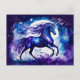 Postal Boho Acuarela Majestuoso Unicornio Azul Bajo las E