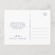 Esta foto del boda azul real de la moda boho, gracias a la postal, es perfecta para un boda minimalista. El audaz diseño bohemio moderno azul oscuro presenta una caligrafía rústica sencilla con un estilo único y clásico. Personalice la parte delantera de la postal con 2 fotos del día de su boda y sus nombres. Personalice la parte posterior con su dirección de retorno. Borra el texto de ejemplo en la parte posterior de la postal para que puedas escribir a mano una nota reflexiva a cada invitado. Alternativamente, puede imprimir un mensaje.