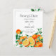 Nuestro Boho Naranja Blossom Save the Date es una manera elegante de celebrar y compartir su alegre evento. Este impresionante diseño cuenta con una gran variedad de flores de naranja y hermosos naranjas que le dan el toque perfecto para cualquier boda, ducha o evento con temática de jardín.