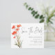 El Guión De Código QR De Boho Red Wildflowers Guarda La Fecha. Una postal conveniente para pedir a sus invitados que guarden su fecha. Añade tu código QR al sitio web de tu boda o simplemente borra esto si no es necesario. Un diseño floral minimalista con Save The Date en un guión moderno.El resto del texto que puedes personalizar fácilmente. Los colores de texto y fondo se pueden cambiar si se desea a través de la opción personalizar adicional.