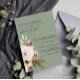 Haga de su boda un sueño inolvidable con esta hermosa invitación de postal Boda Boho Sage Green Floral. Esta elegante y rústica postal presenta una temática floral verde sabia con un ramo de diseño bohemio y austero. Los huéspedes se sentirán encantados por el aspecto natural de esta invitación, con una cuidada exposición de delicadas flores verdes y de color rubí, perfecta para cualquier boda al aire libre o de estilo rústico.