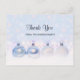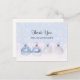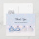 Tarjeta de agradecimiento con un diseño mágico de Navidad. Adornos del árbol de Navidad sentados juntos en nieve blanca. El fondo tiene un patrón de bokeh blanco (luces borrosas) con copos de nieve que caen. Capta perfectamente la maravilla y la magia de la Navidad
